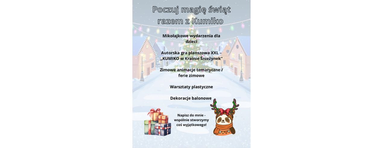 Nazywam się Ania i prowadzę Kumiko, która łączy profesjonalne animacje dla dzieci i rodzin z tworzeniem wyjątkowych dekoracji balonowych i scenografii okolicznościowych.